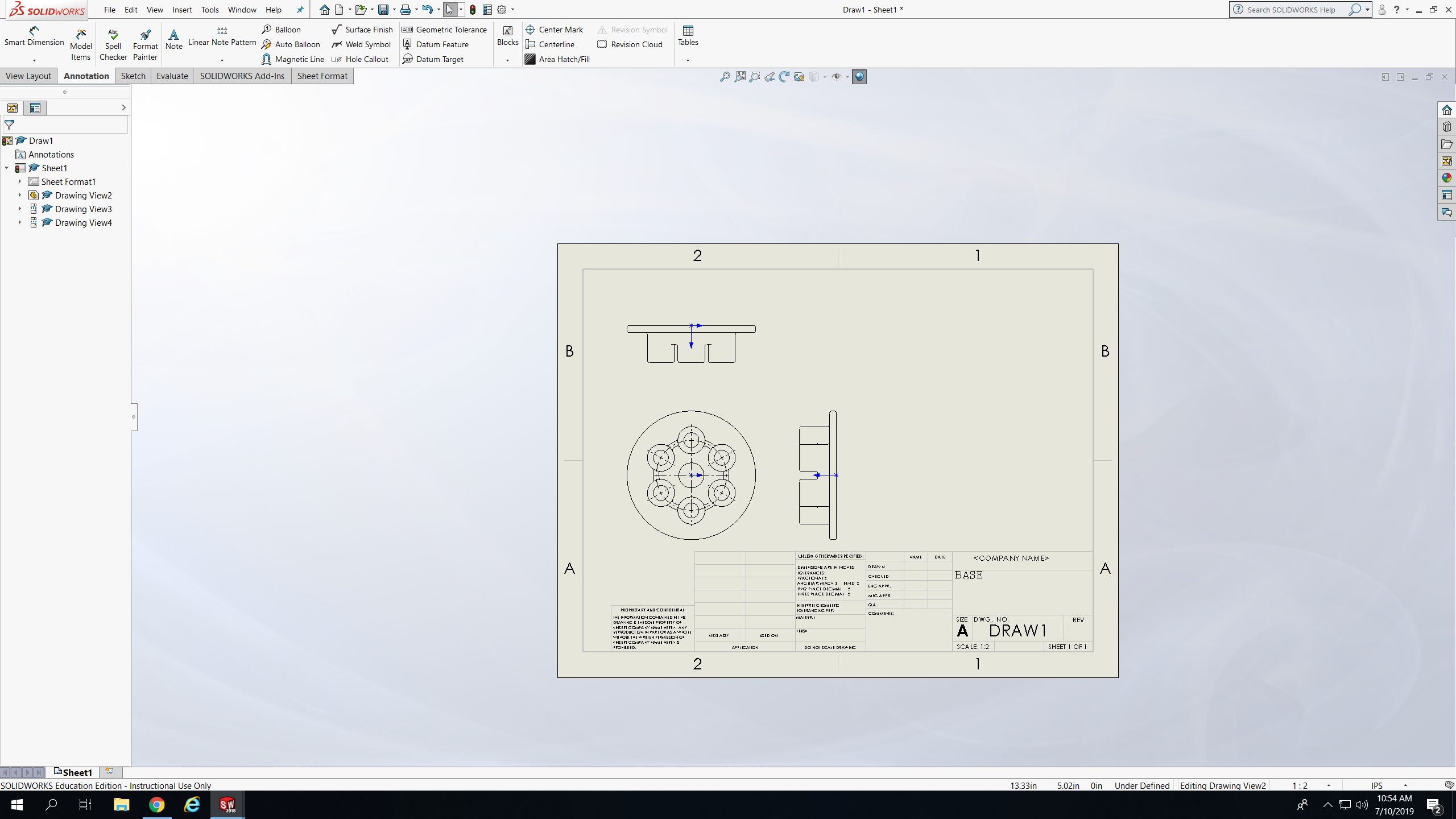 Today we learned more about how to create a part drawing and we completed the nameplate project. I will provide examples of what I learned below.